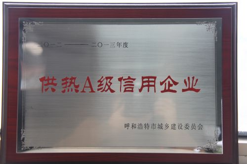 呼市城發供熱被評為A級信用企業