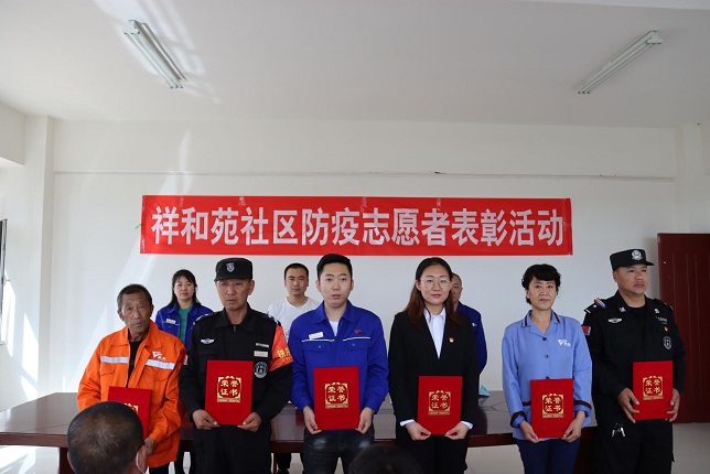 在這次表彰活動(dòng)中,共授予23名志愿者和物業(yè)工作人員榮譽(yù)證書,祥和苑公租房項(xiàng)目經(jīng)理隗公樸接過(guò)鮮紅的榮譽(yù)證書說(shuō):在這次疫情防控工作中,祥和苑社區(qū)黨組織和物業(yè)公司黨支部對(duì)項(xiàng)目處工作人員的關(guān)愛,是物業(yè)人不斷奮戰(zhàn)的精神動(dòng)力,有黨旗的地方就有力量,作為一名老黨員,我會(huì)牢記使命,不負(fù)榮譽(yù),不負(fù)職責(zé),帶領(lǐng)祥和苑項(xiàng)目處全體工作人員,積極配合小黑河鎮(zhèn)社區(qū)做好各項(xiàng)工作,再接再厲,守護(hù)好小區(qū)業(yè)主的健康和平安。