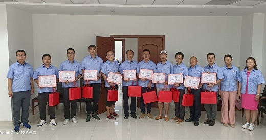 公司對勇于抗擊新冠肺炎疫情的15名志愿者進行了表彰。經理李錚、副經理韓雪峰同志為志愿者頒發了獎狀和紀念品。