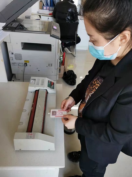 城發(fā)物業(yè)公司精心設(shè)計排版,為4個公租房小區(qū)制作了2萬多張居民出入證,從1月26日開始分批次地為4個公租房小區(qū)的1.6萬多戶居民辦理出入證,并且為了保證卡片的持久耐用性,在居民提供相片、有效身份證件復(fù)印件、詳細住址、聯(lián)系方式等個人身份信息后對卡片進行了覆膜塑封處理??紤]到公租房小區(qū)人口密度大、喜扎堆、防護意識較薄弱的特點,物業(yè)公司公租房小區(qū)項目處在開展物業(yè)服務(wù)工作的同時按時間、分批次,保證所有居民排隊、有序、安全的辦理出入證。
