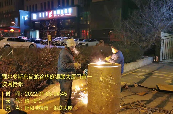 為確保用戶盡快恢復(fù)供熱,搶修人員相互配合,放棄休息,全力以赴進(jìn)行搶修,經(jīng)過(guò)30小時(shí)作業(yè),終于順利完成漏點(diǎn)修復(fù),于1月3日21時(shí)30分,一次管網(wǎng)恢復(fù)供熱。尚東楓景、竹園東區(qū)、玉錦軒、巨海城八區(qū)等100萬(wàn)平方米熱用戶的溫暖得到了保障。而由于長(zhǎng)時(shí)間的不停歇焊接,漏點(diǎn)修復(fù)后,焊接人員的手都腫了無(wú)法伸直。