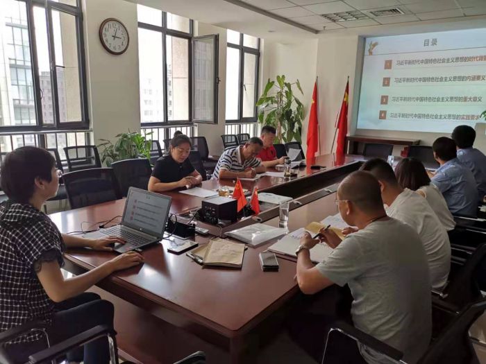 718日下午,物業公司黨支部書記娜仁同志在會議室以《深入學習實踐習近平新時代中國特色社會主義思想》為主題,為全體黨員和入黨積極分子講了一堂具有很強的思想性、政治性和指導性的專題黨課。城發公司黨委副書記張永同志參加學習。