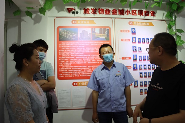 在參觀金城小區標準化物業建設時,高翔高度贊揚了物業公司黨建工作的制度性和規范性。并指出,紅色物業始終以黨建為引領,彰顯紅的特色,體現的成效,以服務群眾為重點,著力解決社區居民存在的實際問題,提升物業管理服務水平,發揮國有企業的示范引領作用,推進黨的工作向行業延伸、向領域覆蓋和向社會輻射,深化雙報到雙服務建設幸福和諧社區,共同為創建宜居、平安、人文、智慧的幸福和諧社區提供堅強有力的保障。