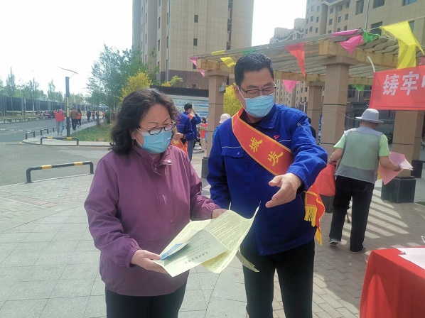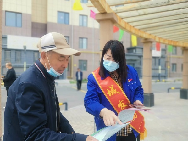 活動現(xiàn)場,黨支部書記娜仁按照既定方案,帶領大家分頭行動起來。“民族政策宣傳組”的隊員們一邊向過往的居民發(fā)放黨的民族理論和民族政策宣傳單,一邊做好現(xiàn)場宣傳講解,重點宣傳了黨的民族政策的主要內容、民族平等政策的內涵、民族區(qū)域自治政策的內涵、現(xiàn)階段我國民族工作的主題、現(xiàn)階段發(fā)展少數(shù)民族經(jīng)濟的方針、民族團結關系的“三個離不開”內容、民族團結工作的“四個維護”內容及習近平總書記對各民族提出的“五個認同”等內容;講解了如何理解“中華民族共同體意識”、如何理解“推廣普及國家通用語言文字教育”等內容。“安全防火宣傳組”的隊員們分三組入樓開展安全防火宣傳檢查,重點對樓道內個別存在的亂堆放雜物、亂停非機動車及擅自占用、堵塞消防通道的住戶張貼清理通知單、宣傳將樓道占為己用的重大安全隱患,并告知業(yè)主限期自行清理,切實保障廣大業(yè)主的居住安全和環(huán)境衛(wèi)生。